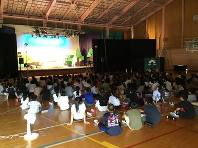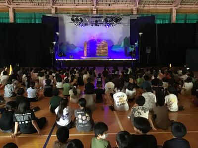 少々暑い体育館でしたが、「あらしのよるに」の劇を見ることができました。
