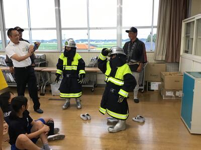 地域の消防団のみなさんにおいでいただき、出前講座がありました。