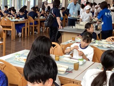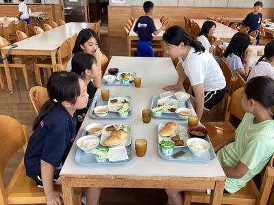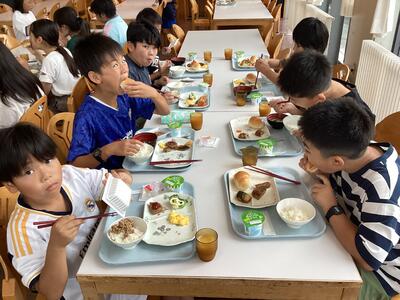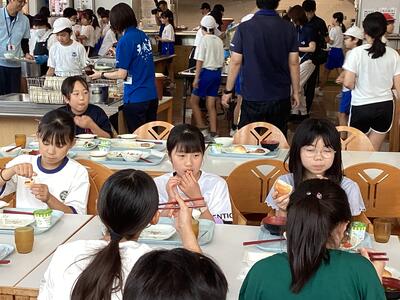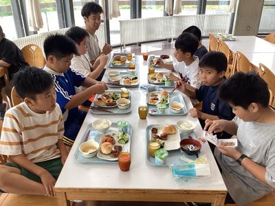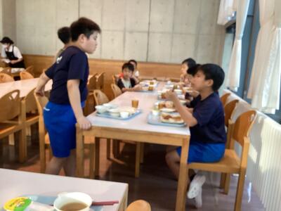 2024年7月10日 08時18分30分前から朝食に並ぶ子どもたち
