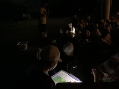 真っ暗の中 光る動物の目を探して 文字を書き込んでいました