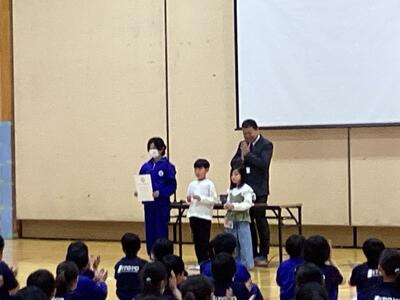 PTA会長さんに表彰では、小廹会長さん、後藤副会長さんに