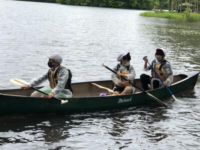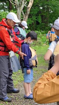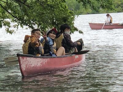 お部屋のチェックをしていただき 一発OKとまでは行きませんでしたが カヌー体験へ 向かいました