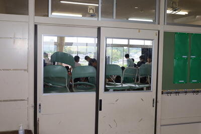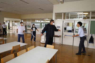 不審者が校舎内に入ってきたことを想定し、不審者対応、避難訓練、