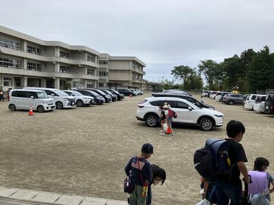 校庭に車がいっぱいでしたが、順序よく下校していただきました。