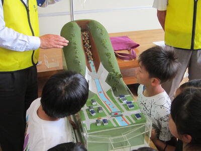 最後に、実際の模型で、水害や地すべりの怖さを学習しました。