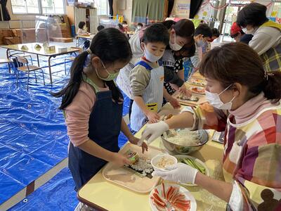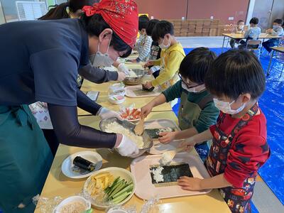 幼稚園では、JAの食農教育事業にお世話になり様々な活動を展開してきました。お米だけでも、9月のお団子・12月の大福がありました。そして今回は、恵方巻です。今年度は、これで最後になります。