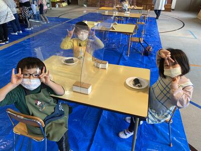 みんな上手に巻き上げ、自慢げに見せつくれました。作った恵方巻は、今年の恵方である南南東を向いて美味しくいただきました。髙田様、今年も大変お世話になり、ありがとうございました。