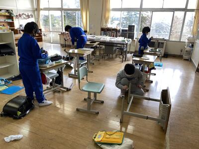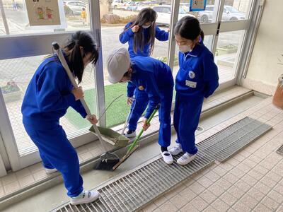 あの暑い夏からこの凍える冬まで、長い2学期も残すところ数日となりました。この日は、自分たちの学び舎への感謝の気持ちを込めていつもよりも長めの時間を設定し、「ロング清掃」として取り組みました。いつもの掃除ではなかなか手が回らない下駄箱や机・いすの足の裏などもきれいにしました。これで、気持ちよく3学期を迎えられます。