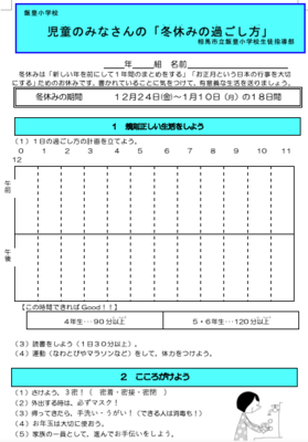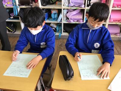 ふゆ休みのふりかえりと3学きにがんばりたいこと 1年生