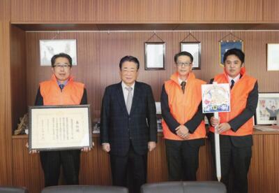 報道でも取り上げられましたが、11月に「飯豊地区安全ボランティア」が【文部科学大臣賞】をいただきました。これは、令和3年11月の福島県教育委員会の表彰を受け、飯豊地区のこれまでの取り組みが全国的に認められたことになります。これも、区長様方をはじめ、救Qの家にご協力くださっている方々、そして地域の皆様のご協力の賜物に他ありません。せっかくの機会でしたので、相馬市長様と教育長様に、推進委員長の但野直治様・PTA会長の蓬田信一様とともに、受賞の報告をしてまいりました。保護者の皆様には、3月の授業参観の際にご報告いたします。