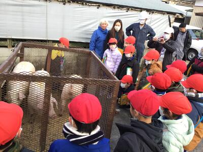 2年生は、先日の「蒼龍寺」に続き、生活科「もっとなかよし町探検」の目的地として養豚をされている【渡邉農場】に訪問しました。渡邉農場さんでは、子どもたちが何かをすることではなく、お仕事のことについてご説明いただいたり子どもたちの質問にお答えいただいたりしました。