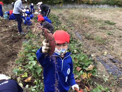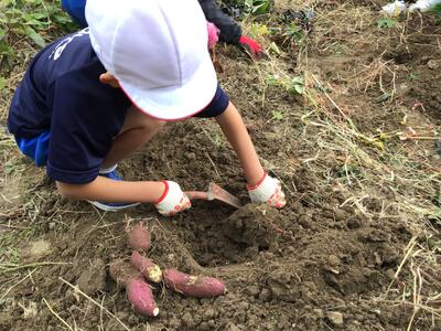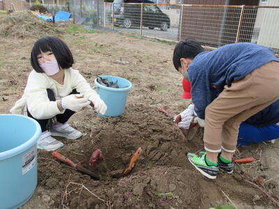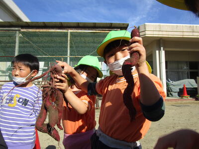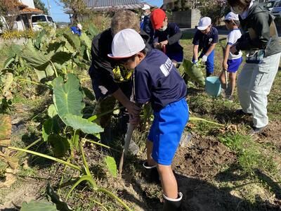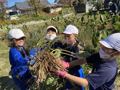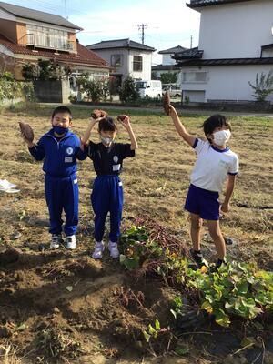 ふれあい学級でも、サツマイモを掘り起こしました。やっぱり畑は堅かったのですが、3人で協力して掘り起こしました。