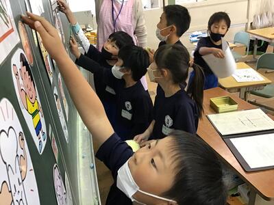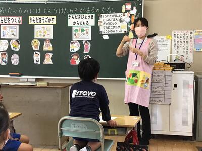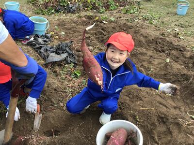 この日の給食は、1年生が収穫をした「サツマイモ」が「大学いも」になって登場しました。実はサツマイモが苦手という1年生も、「おいしいね」と言いながら完食していました。