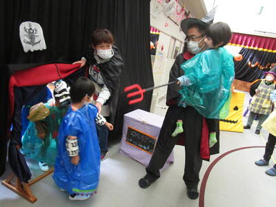 最後には、特別ゲストも登場しました。なんと用務員さんが、マジックを披露してくれました。おかげでハロウィーンパーティーは大盛り上がりでした。