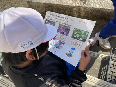 この日は、班ごとに決められた場所に冬と春を彩る花苗を植えました。しかし、今回はどんな花苗をどのように植えるかは自分たちで選んで決めました。愛着をもって世話をして美しい花を咲かせてほしいです。