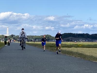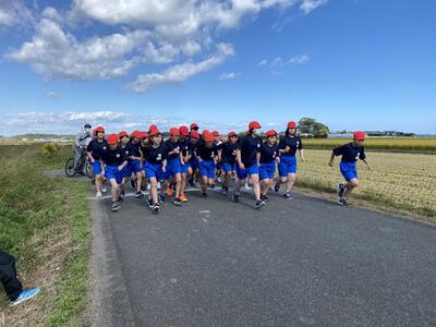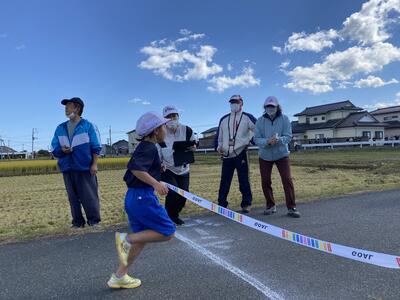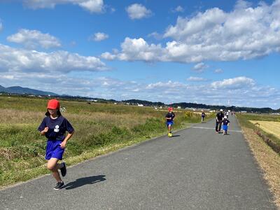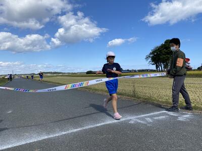 農道を走ることと、十分な待機場所がないことに配慮をして、3つのグループに分けて出走します。最初のグループは、4年生と3年生です。