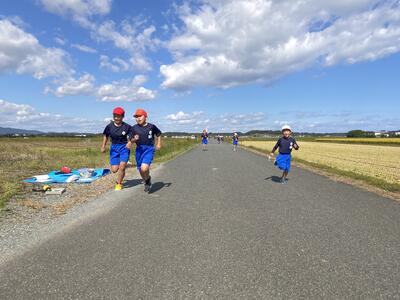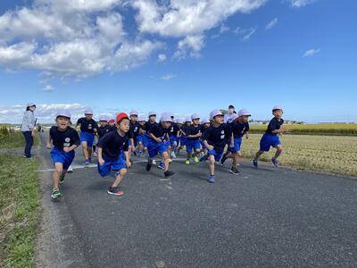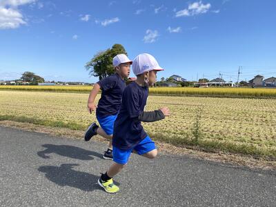 園庭からスタートさせ、徐々に距離を伸ばして練習を重ねてきました。写真の通り、ぴかぴかの青空のもとたくさんの保護者の皆様の応援を受けて頑張って走り切りました。保護者の皆様の熱い声援が、子どもたちにの大きな力となりました。平日の午前中でしたが、時間をつくってくださりありがとうございました。