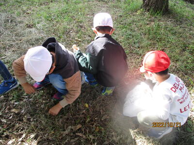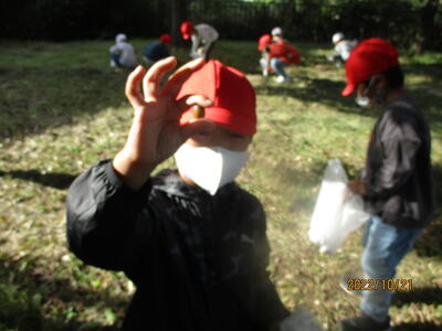 2022年11月1日 14時41分1年生は、生活科:単元「楽しい秋いっぱい」の「公園で秋を探そう」の学習として、新地総合公園に行ってきました。公園では、夢中になってどんぐり拾いをしてきました。あっという間に100個を超えた子もたくさんいました。学校に戻って、このドングリがどんな風に変身していくのか楽しみです。