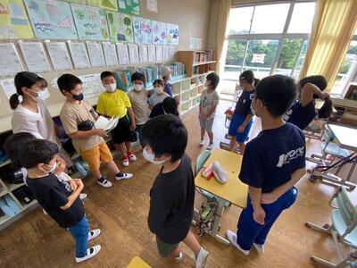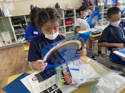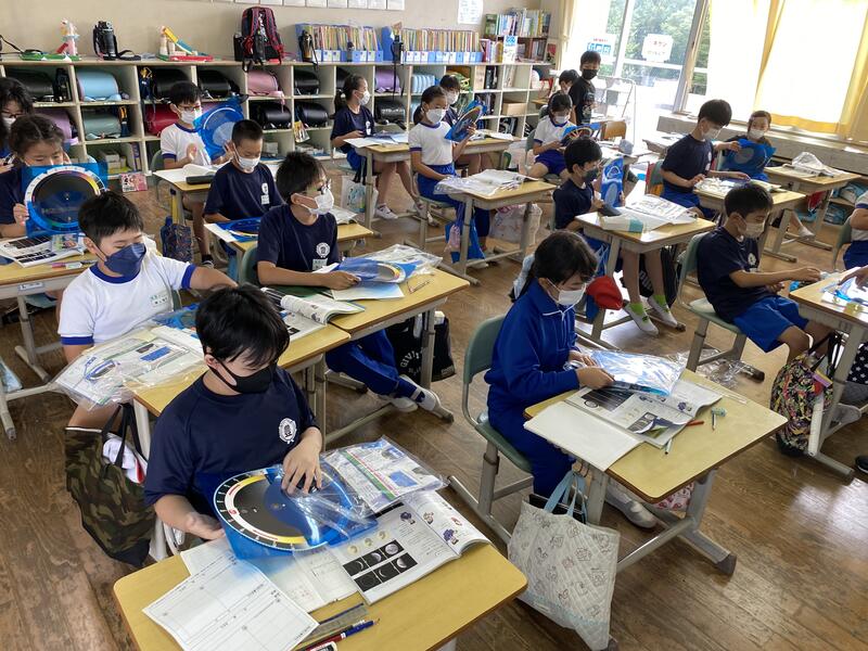 4年生は、理科「月や星の見え方」の学習をしています。明日の「中秋の名月」で「満月」を前に、星座盤が配られました。ぜひ、この星座盤を片手に明日の晩は、月や星を観察できるといいです。現在の予報では、明日は少し天気が回復しそうです。