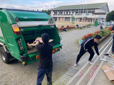 資源物回収は、多くの方々が前日までに学校に搬入してくださっており、当日はトラックやパッカー車に積み込むことがメインの作業でした。こちらは、本部役員の皆様にお世話になりました。