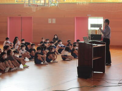 新たな新型コロナウイルス感染確認がなくなって2週間が経ちました。そこで、この日は久しぶりに全校児童が一堂に会して全校集会を行いました。2学期の始業式に、「気づき よく考え 表現しよう!」のヒントになることを話していきますと予告していました。そこでこの日は、相馬市全体で力を入れている『リーディングスキル』について話しました。2年生の国語の教科書には、「たんぽぽのちえ」という説明文と「お手紙」という物語文が、もう数十年以上取り上げられています。この2つの教材を例に、「係り受け解析」と「照応解決」について、子どもたちと共通理解を図りました。「係り受け解析」は、「何が 何を どうした」を正しく読むこと。「照応解決」は、「それ」「これ」などの指示語をつかむこと。省略された主語や目的語が何を指しているかをつかむことです。今までもやってきた学習ではありますが、子どもたち自ら意識をして学ぶことにより、より効率的に身に付けることができるものと考えました。