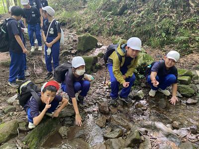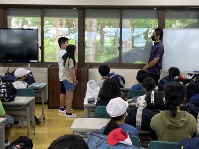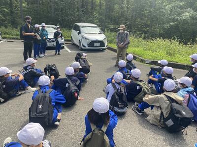 振り返りでは、代表児童が、「団結して協力して登ることがてきました。ありがとうございました。」「トレッキングのことを教えてくれてありがとうございました。いろんなことが知れました。山には普通のところに生えていない植物がありました。最初は大丈夫だったけど、だんだん急になって大変だったたけど、頑張れました。」と、お礼の言葉や感想を発表しました。