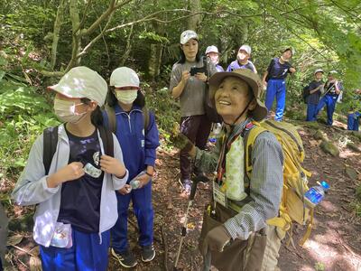 はじめに、上手に登るコツを教えていただきました。①前の人と間隔を開けすぎない。②足元を注意すること。特に根っこの上を歩かない。③道が細いのでなるべく山側を歩くこと。④植物などいろんなものを見つけて自然を楽しむこと。