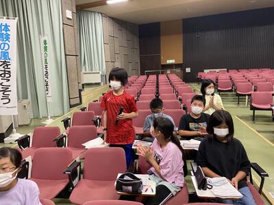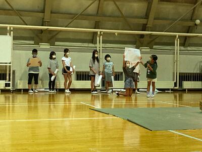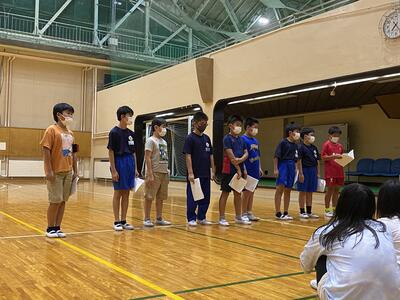 第2部では、学級ごとに準備してきたスタンツ発表をしました。1組2組ともに、クイズ班と歌班の合計4班が発表しました。クイズ班の発表では、答えがわからなくても、なんとかしようとしていつのまにか大喜利になってしまい、爆笑を誘っていました。また、夏休みに取り組んできた理科の自由研究からの出題もありました。とても素直な子どもらしさに嬉しくなりました。歌班の発表は、アニメワンピースの映画の主題歌「新時代」やゲームのプロジェクトセカイから「群青讃歌」の発表でした。クイズも歌も全員が、みんなで盛り上げよう・楽しもうと、一生懸命な5年生の様に感動しました。