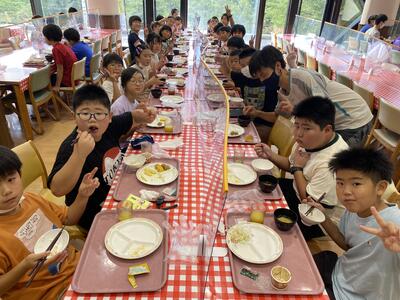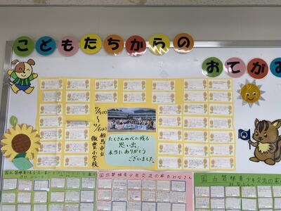 食堂の壁には、7月にお世話になった飯豊小学校6年生からのメッセージが飾られていました。