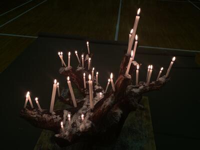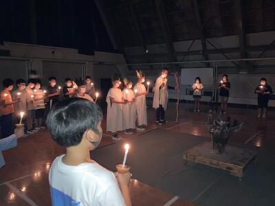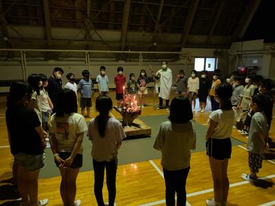 2日目最後の活動は、総合研修室でキャンドルファイヤーを行いました。