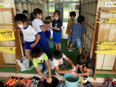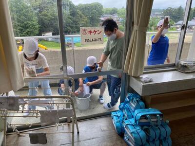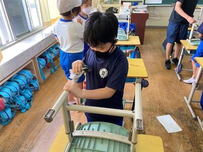 そこで、学期末に向けて、1学期間使用した校舎内の清掃を学級ごとに協力して取り組むようにしました。特に、普段やらない「ロッカー内のふき掃除」「机・イスの足のほこりとり」[「下足入れのふき掃除」[傘立ての掃除」等も行いました。