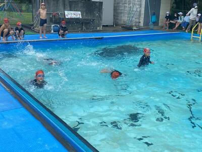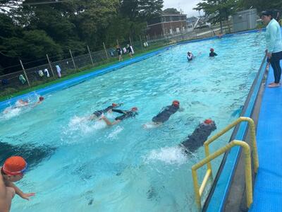 6年生も最後のプール学習を行いました。6年生は、泳力に合わせてコースを設定し、それぞれの目標に向かって練習に励みました。また、入水できない児童は、校庭の草むしりを頑張りました。