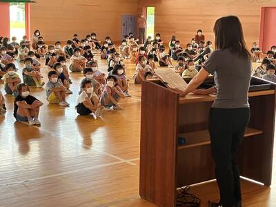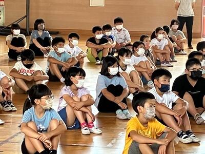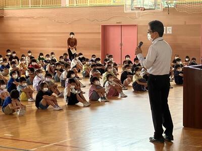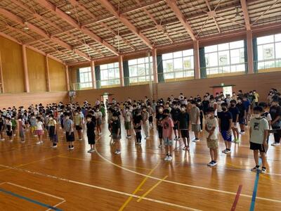 式では、今年度の重点目標「気づき よく考え 表現しよう!」について、いつものようにスライドを使って振り返りを行いました。1学期は、予定変更になったり新型コロナウイルス感染予防のために実施できなかったりしたために、子どもたちに私から直接話をする機会が少なかったために、2学期に改めて詳しく話すための布石となるような話をしました。最後は、安全で楽しい夏休みとし、8月22日(月)に笑顔で元気に登校してほしいと伝えました。