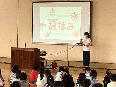 また、夏休みを健康に過ごすために、養護教諭からは歯みがきやコロナ予防についても話しました。