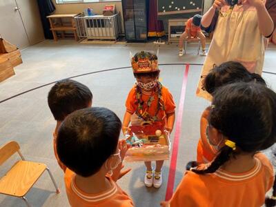 6月生まれのお友達は、ちゅうりっぷ組さん1名でした。みんなで、「たんたんたんじょうび」を歌ったり「誰にだって誕生日」を踊ったり「しっぽとりゲーム」をしたりして楽しみました。