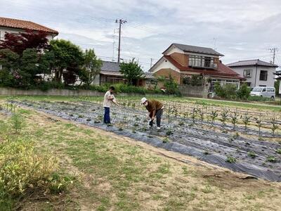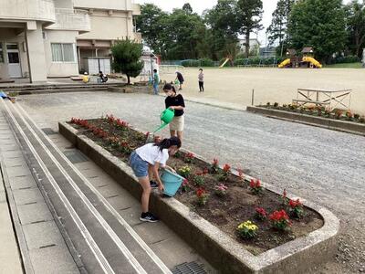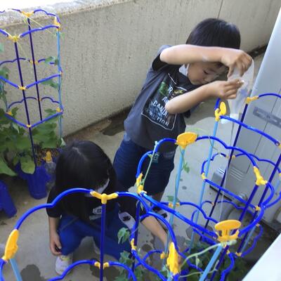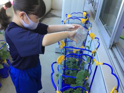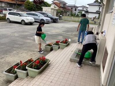 連日、梅雨とは思えない暑さが続いています。週末に備えて、6年生が花壇に水を補給してくれました。なかよし学級でも、畑の作物にたっぷり水をやりました。