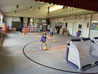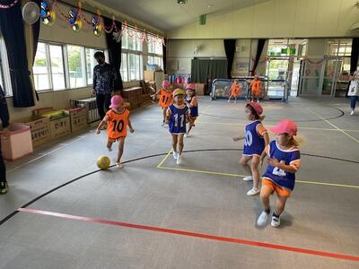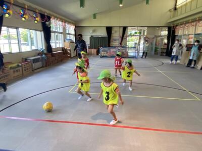今年度は、全園交流会でもサッカーを体験していたために、これで2回目でした。ボール扱いから試合形式まで、すぐにコツをつかんで楽しく活動することができました。