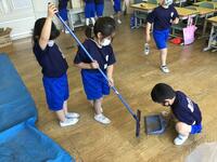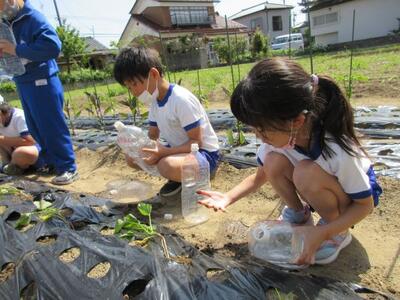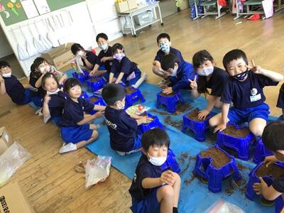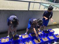 1年生は、生活科の学習で観察するためあさがおの種をまきました。種まきをした後は、植木鉢をベランダに出して水をたっぷりあげました。最後は、みんなで協力して後片付けもがんばりました。