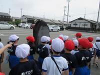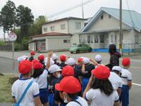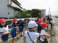 2年生は、生活科学習の一環として「町探検」行っています。この日は、目的地ごとにグループに分かれて本格的な探検をするために、学年全体で学校周辺の施設などの確認をしました。