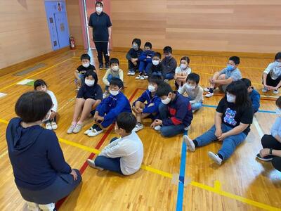 6月1日(水)に3年ぶりに行われる「相馬新地地区小学校体育大会」に参加する6年生の壮行会を行いました。5年生が中心となって計画をしました。