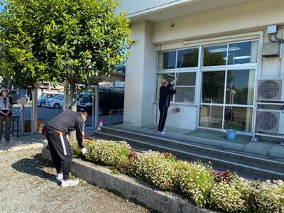 ★奉仕作業:環境委員さんを中心に、程田・新田・学区外の方々が担当となり、窓ふきや除草をしていただきました。