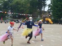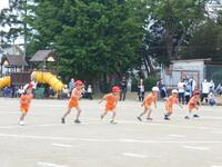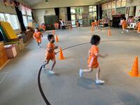 ちなみにゲーム「ナンバーコール」は、音楽に合わせて走っている途中、タンバリンをたたく合図の回数に合わせて仲間をつくるというものです。走る動きの中で、しっかりと指示を聞き取って、その指示を実現させるというものです。遊びの中で、様々な力をが鍛えられます。