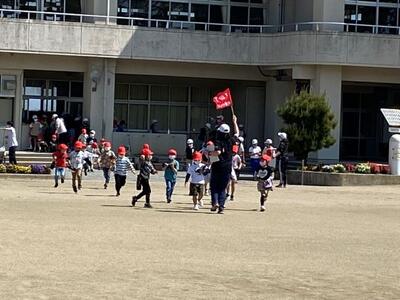 今年度最初の避難訓練を行いました。幼稚園年少児や1年生は、初めての訓練であるために基本の避難場所と経路を確認するのが第一の目的です。想定は次の通りです。