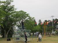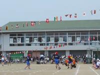 前日に引き続いてPTA本部役員さんと厚生委員さんに朝早くからご足労いただきました。テントを固定し、万国旗を設置して準備の仕上げ完了です。あとは開会式を待つばかり。役員の皆様、大変心強かったです。ありがとうございました!!