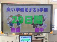 この日の集会も、朝からお昼に時間をスライドさせてテレビ放送で行いました。私からは、始業式に「3学期は進級・進学に向けてよい準備をする学期にしましょう」と話したことを受け、「短い3学期の1/3が過ぎました。良い準備をしていくために、改めて新型コロナウイルス感染予防を徹底していこう」とスライドを使って一つ一つ確認をしました。