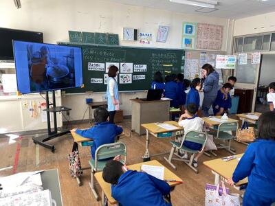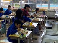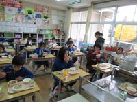 福島県農林水産部農産物流通課が行っている「ふくしま食育実践サポーター制度」を活用し、3年生が、大野農園の菊池様にお世話になりながら「土垂いも」を栽培してきました。先日収穫をし、給食にも提供したことは、このブログでもご紹介をしました。この日は、改めて大野農園の菊池様にご来校いただいて、土垂いも給食を3年1組で召し上がっていただきました。里芋のチーズ焼きとして、提供しました。菊池様は、「こういった食べ方は初めてでとてもおいしかった。」と感想をお話しくださいました。菊池様、ありがとうございました。