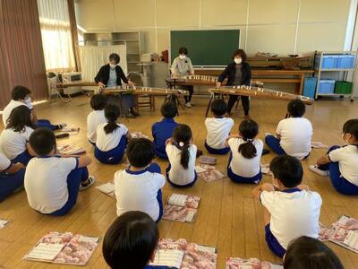 エル・システマ学校音楽支援を活用し、「邦楽鑑賞教室」を実施していただきました。1学期には、中学年が「リコーダー」演奏についてご指導いただきました。今回は、4年生・5年生が筝の演奏を中心に鑑賞させていただきました。来校くださったのは、次の4名の方々です。