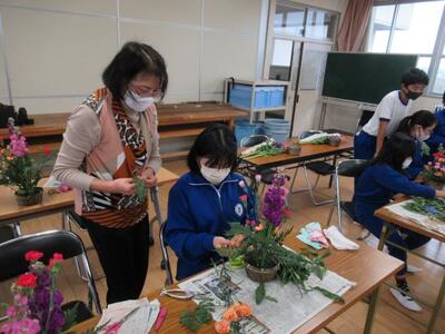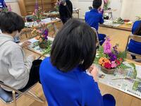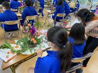 6年生たちは、色や高さ・配置などにこだわって、思い思いに花を生けました。「池坊」には、3つのスタイルがあるそうで、今回教えていただいたのは、「生花」でした。