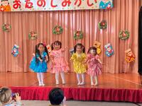 おたのしみ会第1部は、年少組です。登園後の着替えや準備を保育者に手伝ってもらっていた4月から約8か月間、確かな成長を感じることができたおたのしみ会でした。一人一人、動きやセリフをしっかり覚えて、堂々と演技することができました。大変立派で、キラキラしていてとっても可愛かったです。男の子のダンスでは、ショッカーに扮した本気のPTA会長さんとともに、敵役で出させていただきました。保護者の皆様、ご参観くださりありがとうございました。そして、但野会長さん、大変お世話になりました。