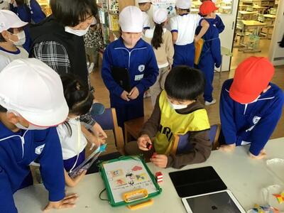 内容は、次の通りです。班ごとにタブレットが配られます。タブレットの中には、校舎内の一部を撮影した写真が8枚保存されています。基本は、その場所がどこなのかを探し当てるゲームなのですが、最初は探せる場所が限定されています。要所要所に、6年2組の実行委員がビブスをつけて控えており、クイズを出題されます。そのクイズに正解すると、探せる範囲が広がっていきます。さらには、写真の場所を探しながら、様々なところに隠されてるお宝も探すという、3つのゲームやクイズを複合的に楽しむ活動でした。